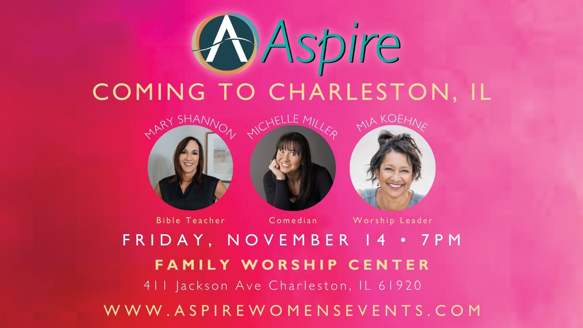 Aspire Women’s Events is a one-night women’s event full of laughter, learning & worship with Mary Shannon, Michelle Miller-McNair & Mia Koehne taking the stage. 1 Bible Teacher – 1 Comedian – 1 Worship Leader. Come with your churches’ women’s ministry, family, friends, and neighbors! Join us for an amazing ladies’ night out!