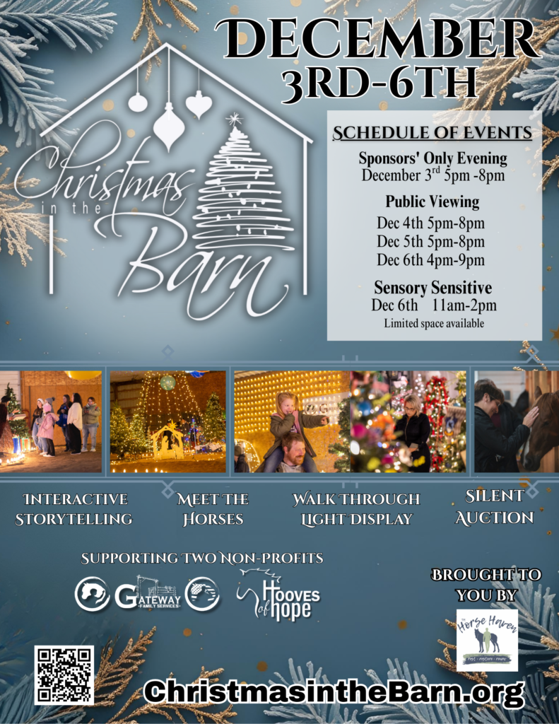 Join us for this magical event, which aims to raise $76,300 to support the health and well-being of the equines. For sponsorship opportunities and silent auction donations, please visit www.christmasinthebarn.org or contact [email protected].