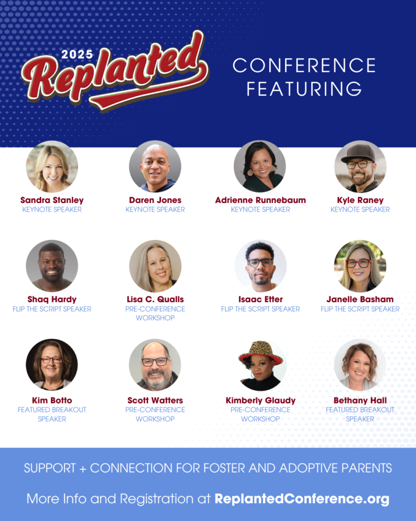 Whether you are exploring adoption, weary in your parenting, or empty nesters, this event is for you. Prepare to be showered with gifts, pampered, encouraged, and inspired at the Replanted Conference 2025. The conference begins on Thursday, October 23rd with pre-conference intensives, with general sessions and breakout sessions on Friday, October 24th, and Saturday, October 25th.