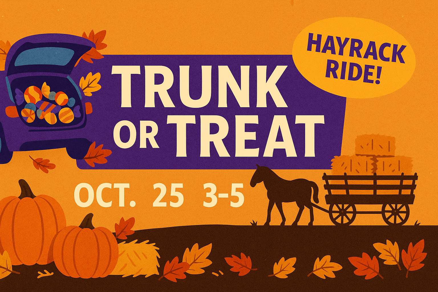 Join us for a Trunk or Treat, bring the whole family for an afternoon of free fun, candy and even hayrack rides!